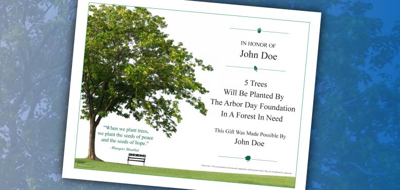 Thank you for your consideration in honoring a loved one by having a tree planted in their memory.